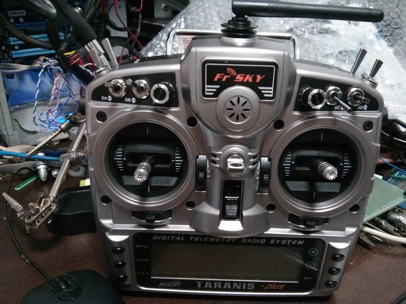Chegou meu rádio Frsky Taranis Plus, foram 3 dias pelo Fedex. Lembrando que o tempo é inversamente proporcional ao dinheiro. O motoqueiro da Fedex veio entregar na porta de casa o produto junto com uma lista imensa de todos os impostos (60% de importação e 17% de ICMS), que para variar são contabilizados em cascata, resultando em 110% do valor do produtos mais frete. Ou seja, o custo efetivo de um 1 dólar é 6 reais, em maio de 2015.